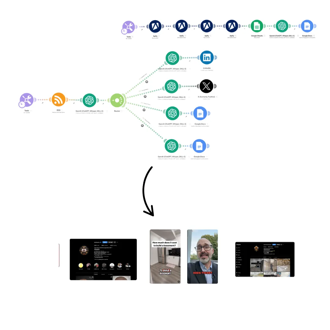Setup of both the Content & Ad System. Using AI scrapers to replicate structures and frameworks from the top 1% in your industry.