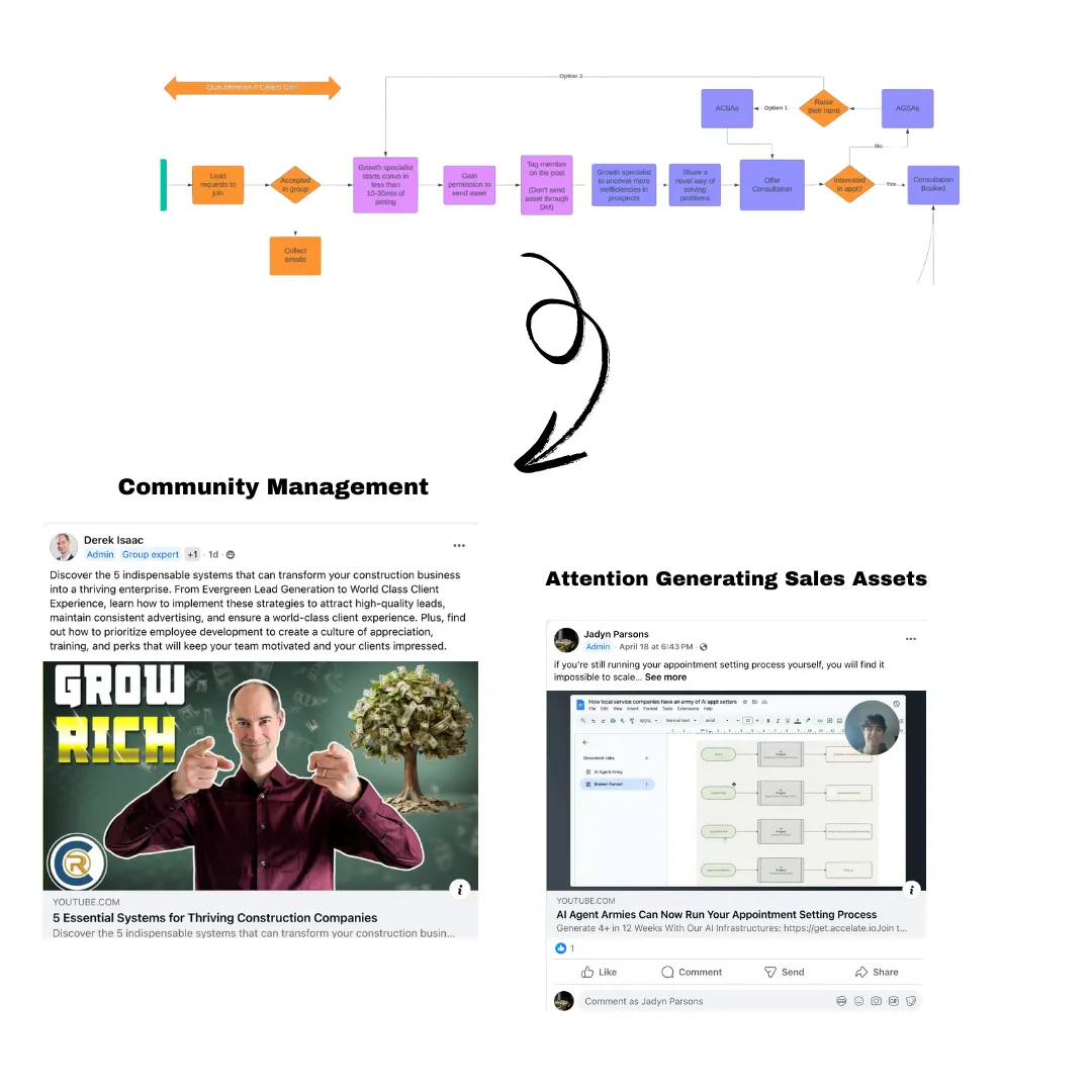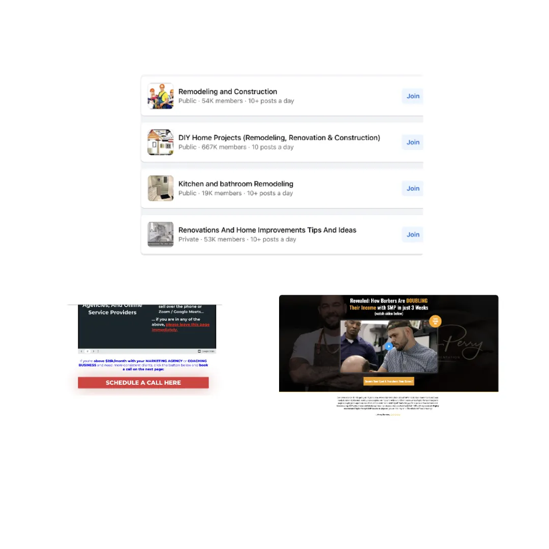 A combination of high converting sales funnel to convert traffic onto an appointment or your custom built community. Custom landing pages that build trust, filter out low quality leads and funnels that increase the value per appointment.